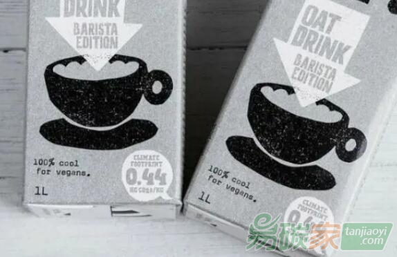 早在2013年,著名的燕麥奶品牌Oatly就分析了其產(chǎn)品的碳足跡。并在五年后,正式將“碳標簽”打在包裝上。比如,其生產(chǎn)的一款燕麥奶碳足跡是0.44公斤二氧化碳/公斤(如圖所示)。之后,Oatly還基于自身的氣候目標,改進了瑞典工廠的生產(chǎn)過程,包括改用可再生能源作為替代能源。