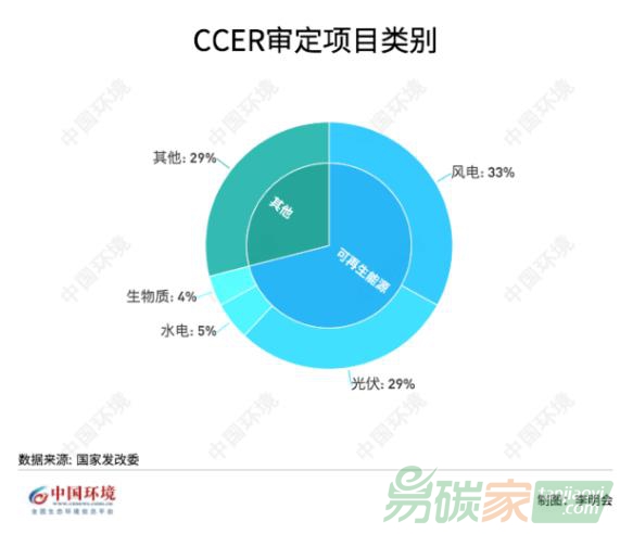 碳配額不同,CCER是減排項(xiàng)目產(chǎn)生的減排量,主要是風(fēng)光、太陽(yáng)能發(fā)電等可再生能源項(xiàng)目,以及林業(yè)
