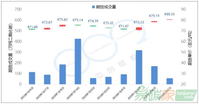 2023年1月19日至1月27日,英國碳價由71.48歐元/噸上漲至80.35歐元/噸,漲幅為12.4%。英國碳