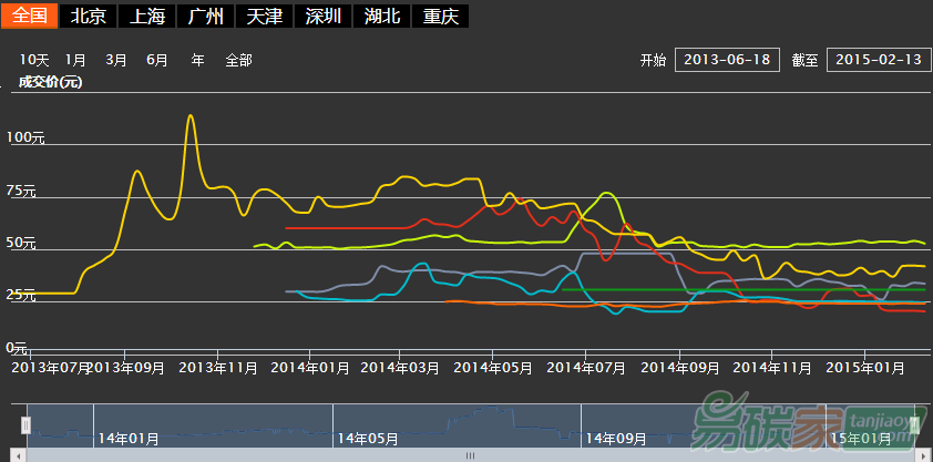 碳交易試點(diǎn)地區(qū)中的5個(gè)于2014年6-7月經(jīng)歷了它們的第一個(gè)履約期,國(guó)家發(fā)改委也于12月發(fā)布了《碳