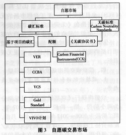 從總體來講,自愿市場分為碳匯標準與無碳標準交易兩種。自愿市場碳匯交易的配額部分,主要的產(chǎn)品有芝加哥氣候交易所(CCX)開發(fā)的CFI(碳金融工具)。自愿市場碳匯交易基于項目部分,內(nèi)容比較豐富,近年來不斷有新的計劃和系統(tǒng)出現(xiàn),主要包括自愿減排量(VER)的交易。同時很多非政府組織從環(huán)境保護與氣候變化的角度出發(fā),開發(fā)了很多自愿減排碳交易產(chǎn)品,比如農(nóng)林減排體系(VIVO)計劃,主要關(guān)注在發(fā)展中國家造林與環(huán)境保護項目;氣候、社區(qū)和生物多樣性聯(lián)盟(CCBA)開發(fā)的項目設(shè)計標準(CCB),以及由氣候集團、世界經(jīng)濟論壇和國際碳交易聯(lián)合會(IETA)聯(lián)合開發(fā)的溫室氣體自愿減量認證標準(VCS)也具有類似性。至于自愿市場的無碳標準,則是在《無碳議定書》的框架下發(fā)展的一套相對獨立的四步驟碳抵消方案(評估碳排放、自我減排、通過能源與環(huán)境項目抵消碳排放、第三方認證),實現(xiàn)無碳目標。