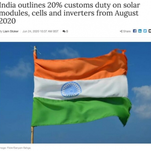 • 【動向】刺激“印度制造”,印度從8月起對光伏產(chǎn)品進口征收20%關(guān)稅