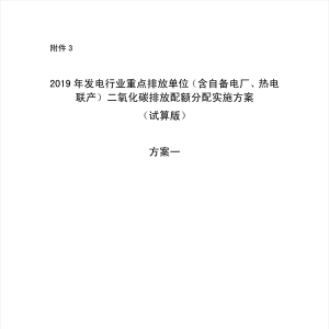 • 2019年發(fā)電行業(yè)重點(diǎn)排放單位(含自備電廠、熱電聯(lián)產(chǎn))二氧化碳排放配額分配實施方案(試算版)