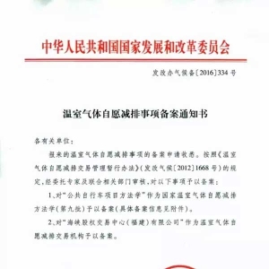 近日,國(guó)家發(fā)改委對(duì)海峽股權(quán)交易中心(福建)有限公司作為溫室氣體自愿減排交易機(jī)構(gòu)予以備案。