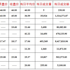 深圳排放權(quán)交易所(CEEX):品種SZA-2013成交5噸,成交額230.00元,開(kāi)盤價(jià)46.00元,最高價(jià)46.00元,最低價(jià)46.00元,收盤價(jià)46.00元,較前一交易日上漲3.25%。品種SZA-2014成交35,924噸,成交額1,314,371.87元,開(kāi)盤價(jià) ...